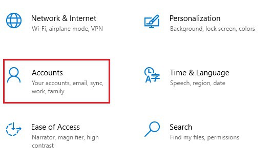 - To open Windows Settings, press Windows + I and then click Accounts.