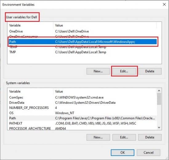 Follow the given steps to know how to edit the environment variable to resolve the issue with Command Prompt: