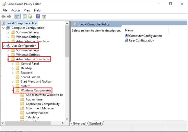 - Navigate to User Configuration > Administrative Templates > Windows Components > File Explorer under Group Policy.
